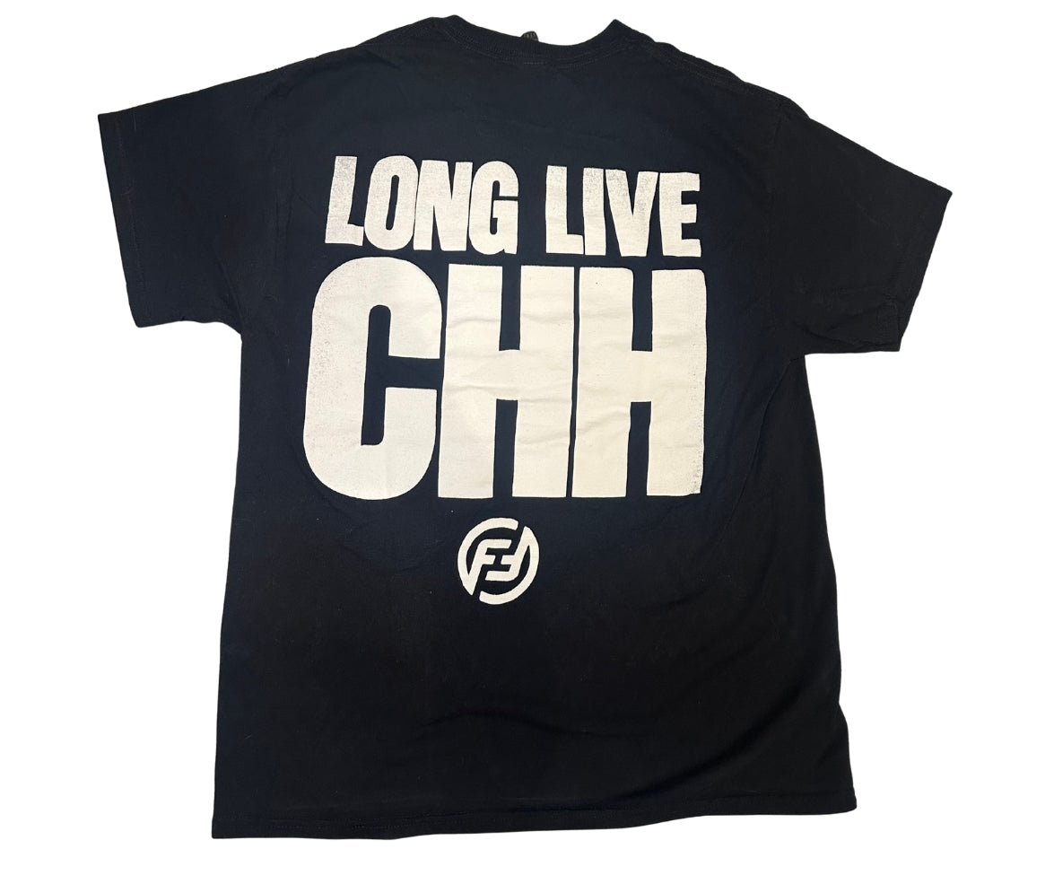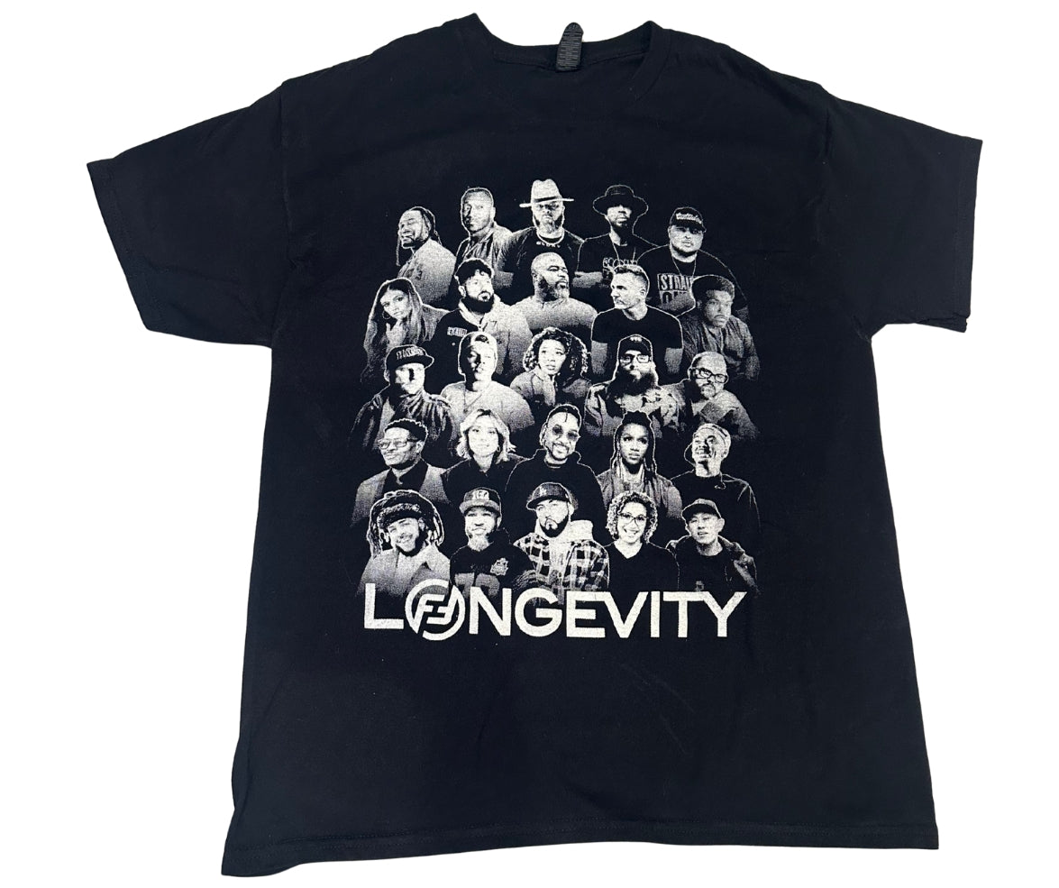 This is the official shirt of Flavor Fest 25' Celebrating 25 years of Longevity. The front of the shirt features 25 faces that have been a part of Flavor Fest's legacy over the past two and a half decades. The back of the shirt has the slogan, "Long Live CHH (Christian Hip-Hop) in bold letters.
